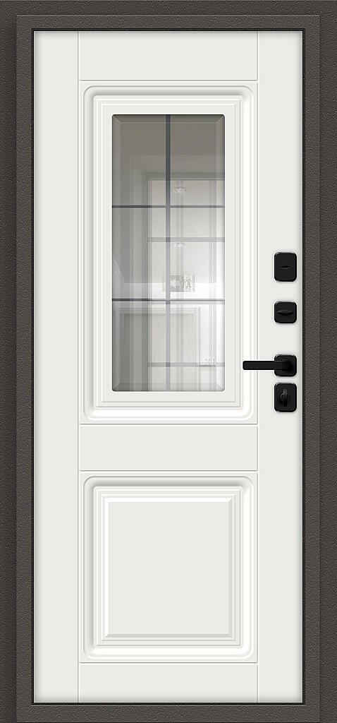 Стальной дверной блок энергосберегающей конструкции с двойным терморазрывом (термомостом) из натуральной пробки, четырехконтурным уплотнением и уникальным цилиндром с термоштоком. Поставляется с правым и левым открыванием наружу.